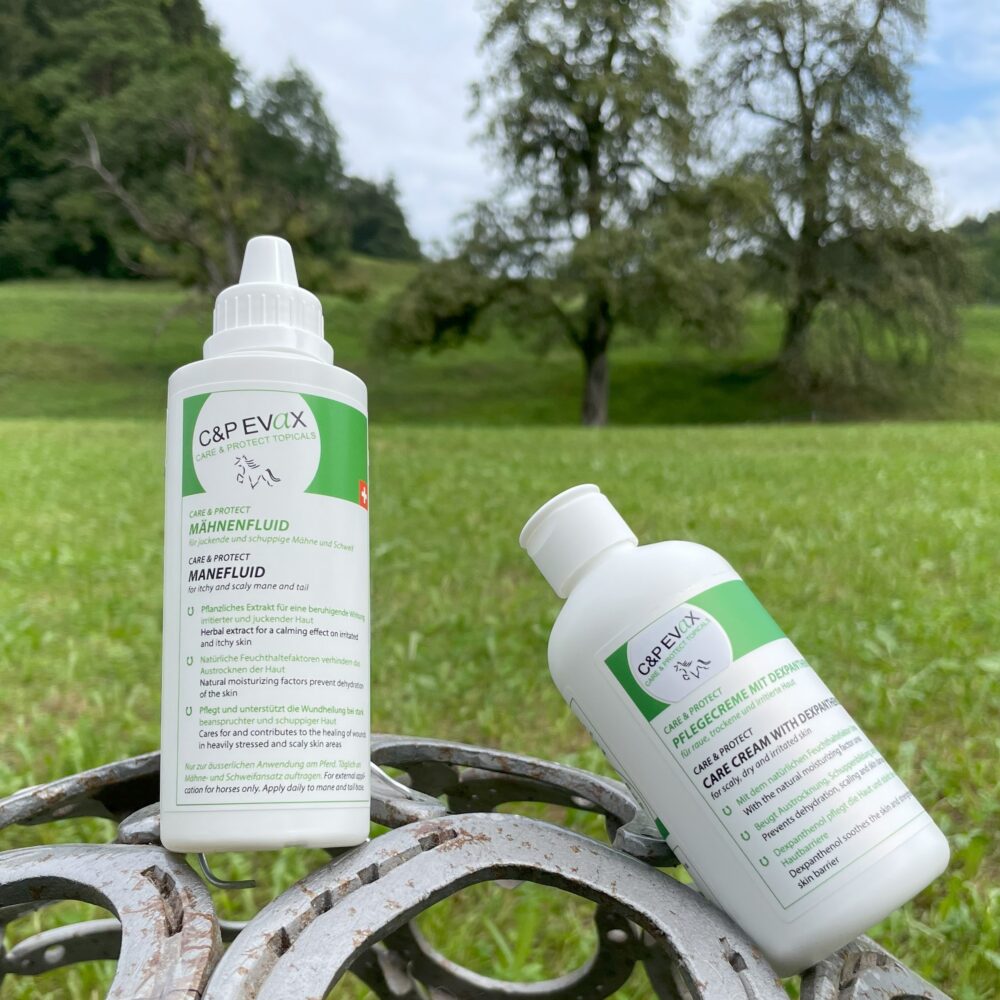Eignet sich perfekt zur unterstützenden Pflege von trockener, schuppiger und strapazierter Pferdehaut. - Care&Protect Mähnenfluid: